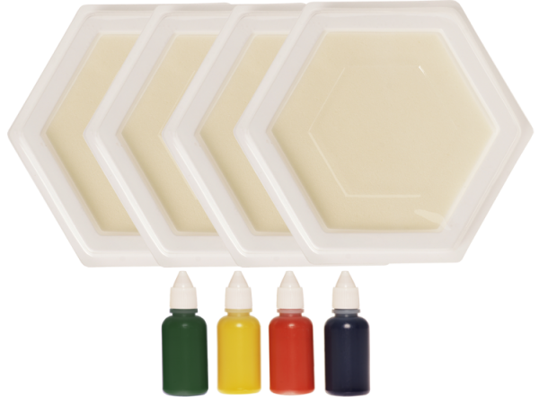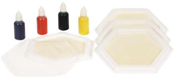 - Inhalt: 4 Stempelkissen "6eck in Rot, Gelb, Gru?n, Blau" inkl. den 4 Farbflaschen