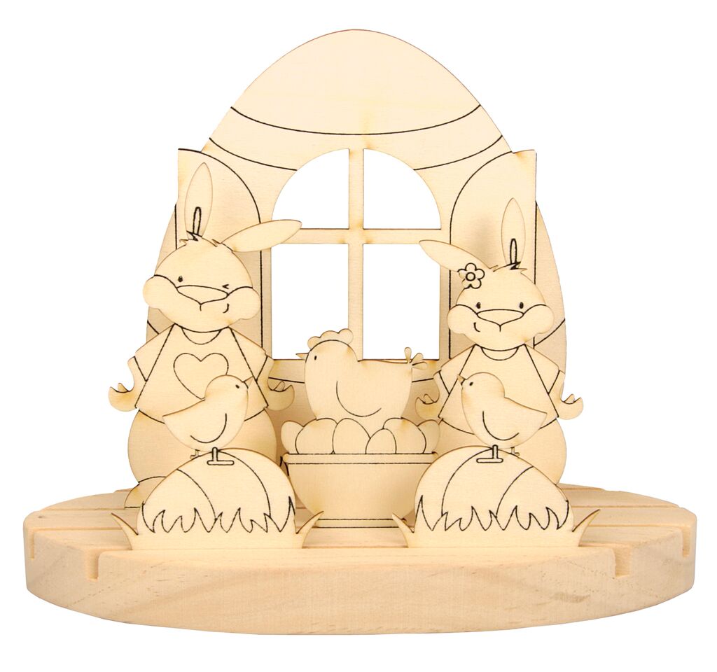 Teelichthalter Ostern mit Familie ist der Teelichthalter mit den Häschen und Hu?hnchen, der dir ganz viel Malspaß bietet. Zum Bemalen kannst du u?brigens auch Buntstifte verwenden. Fertig bemalt, kannst du noch Transparentpapier ru?ckseitig aufkleben, denn was ist ein Osterei-Häuschen ohne Gardine?