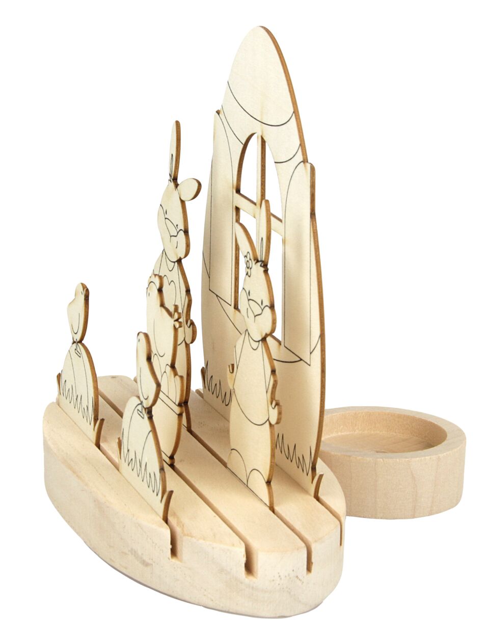 - Inhalt: 1 Teelichthalter "Ostern mit Familie Lopi", unbemalt
