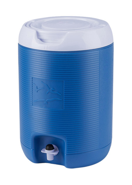Thermo-Getränkebehälter komplett Kunststoff PE mit Schraubdeckel, Tragegriff und Drück-Hahn, außen farbig, innen weiß, gute Isolation, große Öffnung für
