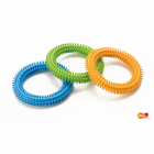 ermöglichen die stufenweise Stärkung des Handgriffs. Die Noppen sorgen für eine Anregung der Berührungssinne. Durch Halten, Drehen und Drücken der Ringe werden die Handmuskeln gestärkt. Fördert die Flexibilität der Handgelenke und die hohe Dichte der Noppen sorgt für ein exzellentes Massageerlebnis. Inhalt: jeweils 1 x grün, gelb und blauer Ring.