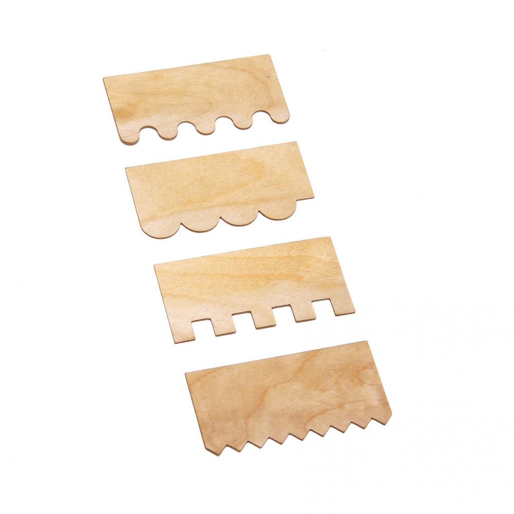 Inhalt: 7 Murmelbahnen aus Holz; 4 Sandspatel aus Holz; 1 Verschluss-Stopfen aus Kork; 3 Murmeln aus Holz und Glas