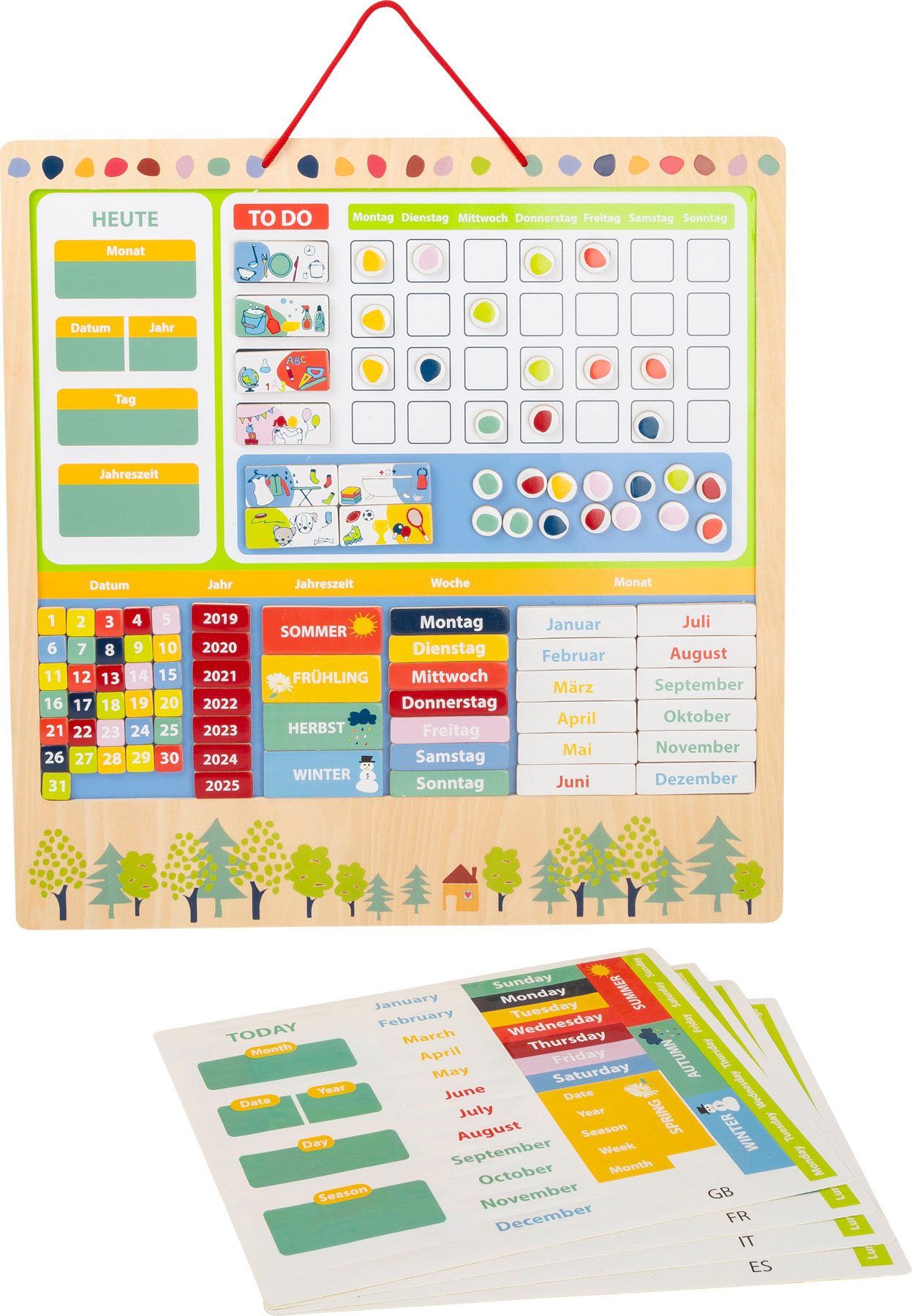 Spielerisch den Alltag strukturieren! Mit diesem Wochenplaner ist dies möglich, denn durch die Einteilung von Tagen, Wochen, Monaten und Jahreszeiten lernen die Kinder nicht nur den Zusammenhang zwischen diesen kennen, sondern können auch ihre Tagesaufgaben darauf einteilen und festhalten. So lässt sich schnell erkennen, was heute ansteht.