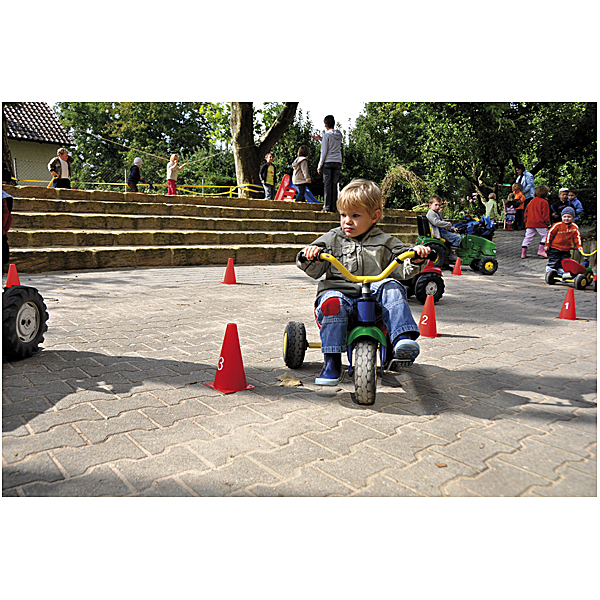 Geeignet für drinnen und draußen einsetzbar zum Markieren von Spielfeldbegrenzungen oder als Parcours aufbaubar. Durch Löcher in der Standfläche können sie mit Heringen (nicht inkl.) im Rasen fixiert werden.